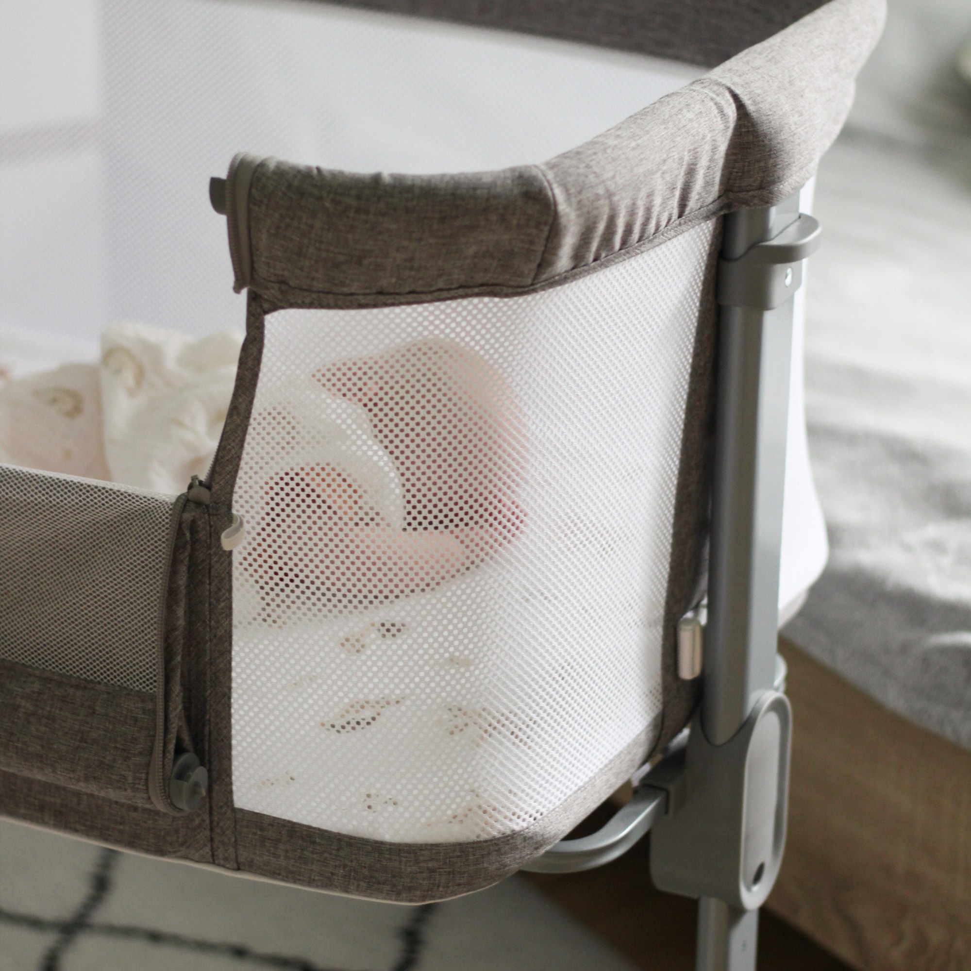 LUNA bočni krevet pruža osjećaj sigurnosti zahvaljujući mogućnosti co-sleepinga , odnosno spavanja zajedno s bebom. Također je izuzetno korisno rješenje za olakšavanje noćnog hranjenja.