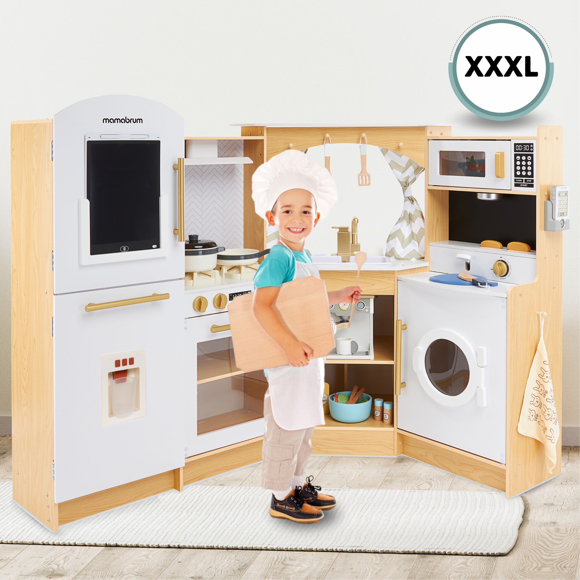 Velika kuhinja opremljena je svime što može zatrebati malom kuharu. Osim električnog štednjaka i pećnice, ima i mikrovalnu pećnicu, toster, aparat za vodu, perilicu rublja i slavinu. Zvukovi i svjetlosni signali koje proizvodi kuhinja (na baterije) diverzificirat će djetetovu zabavu.