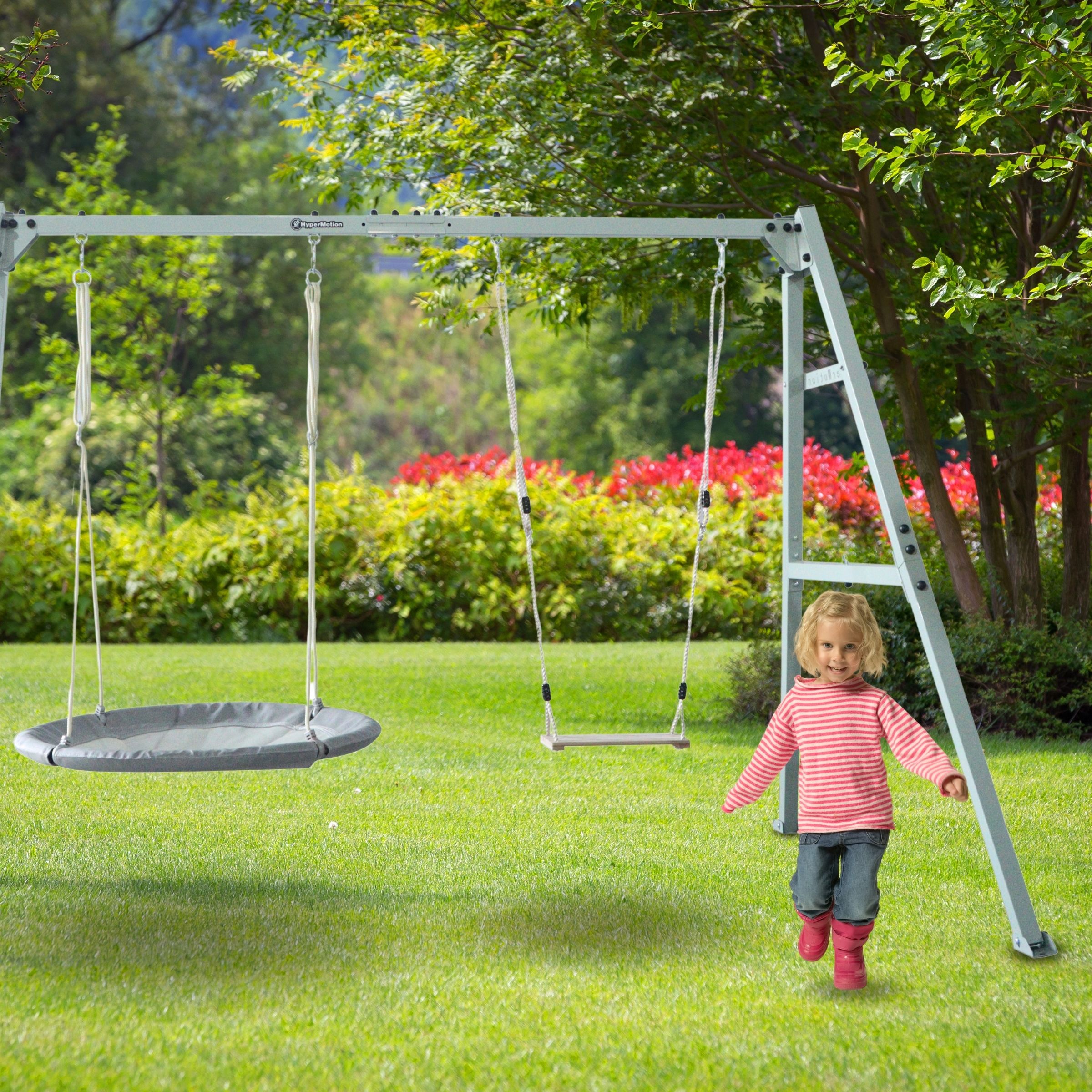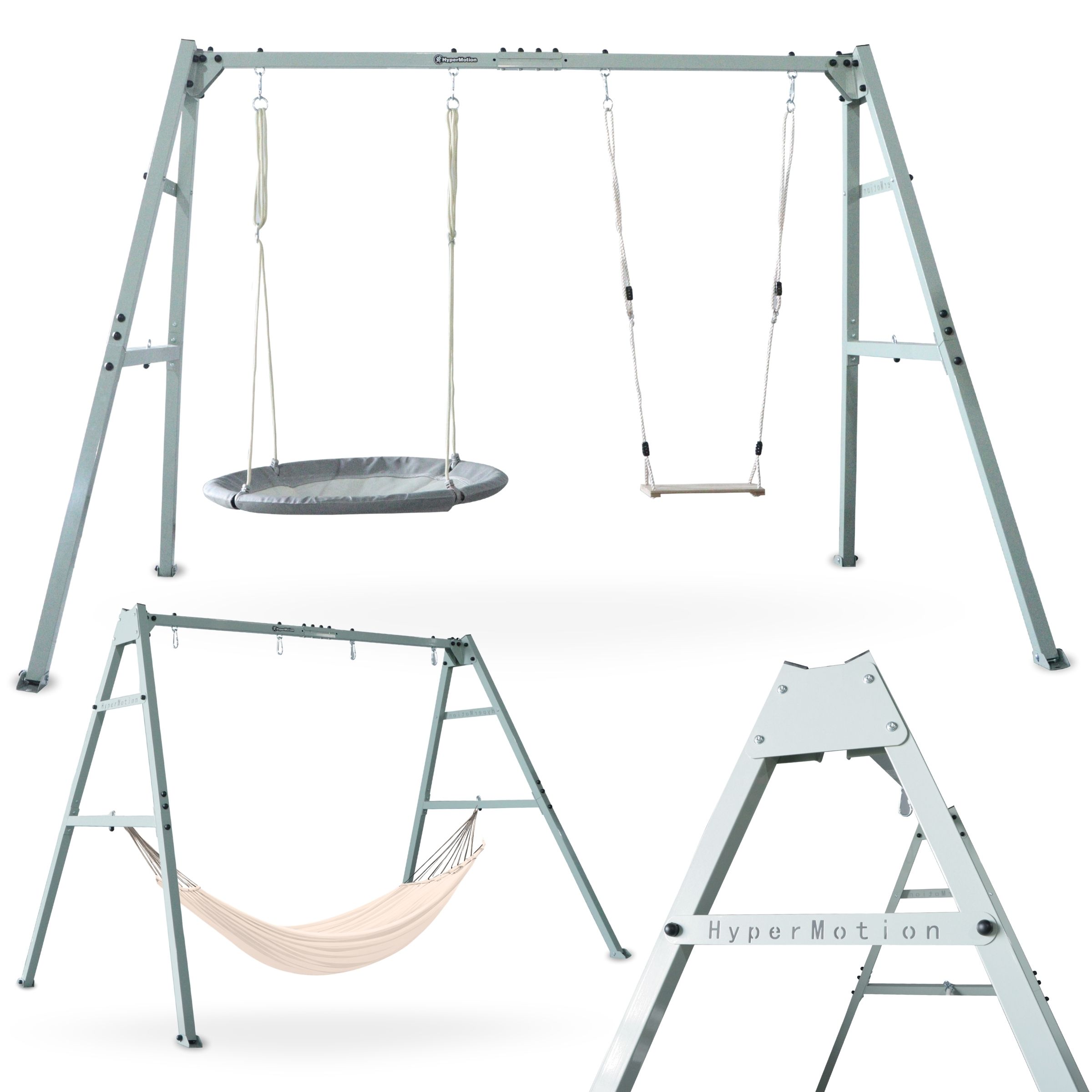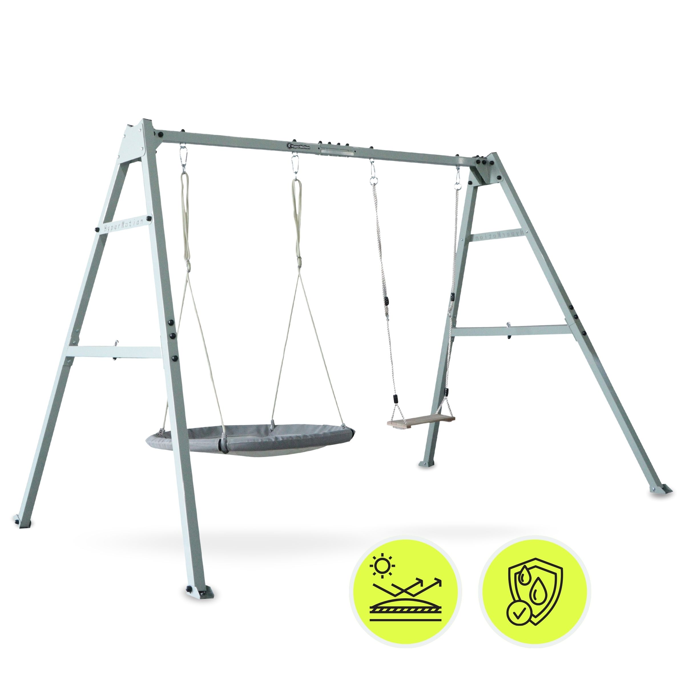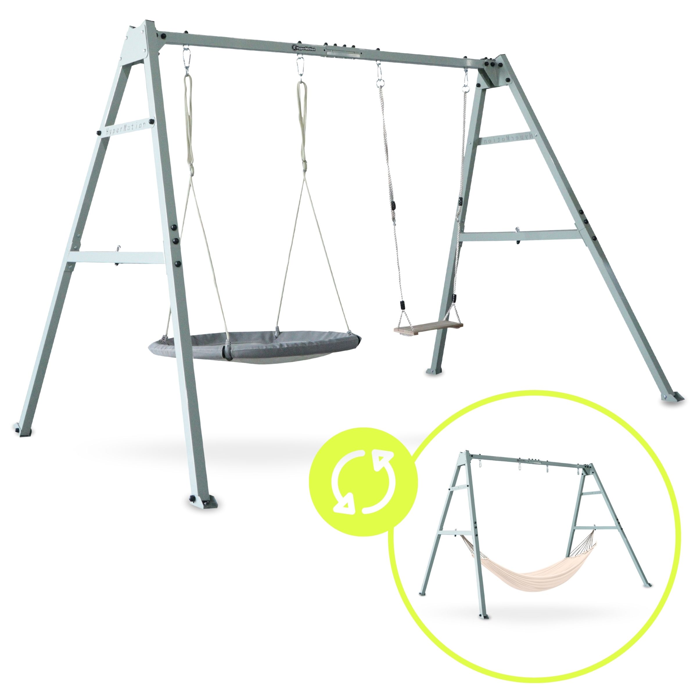 Odaberite funkcionalnu opciju i uljepšajte svoj vrtni prostor svestranim setom koji možete prilagoditi potrebama svoje obitelji. Promjena dodataka traje samo nekoliko trenutaka! Odlučite se za izgled svoje vrtne zone za igru ​​i opuštanje. Lagano ljuljanje u vrtnom gnijezdu, dinamično njihanje na ljuljački ili možda opuštanje u visećoj mreži? Na vama je i vašim najmilijima!