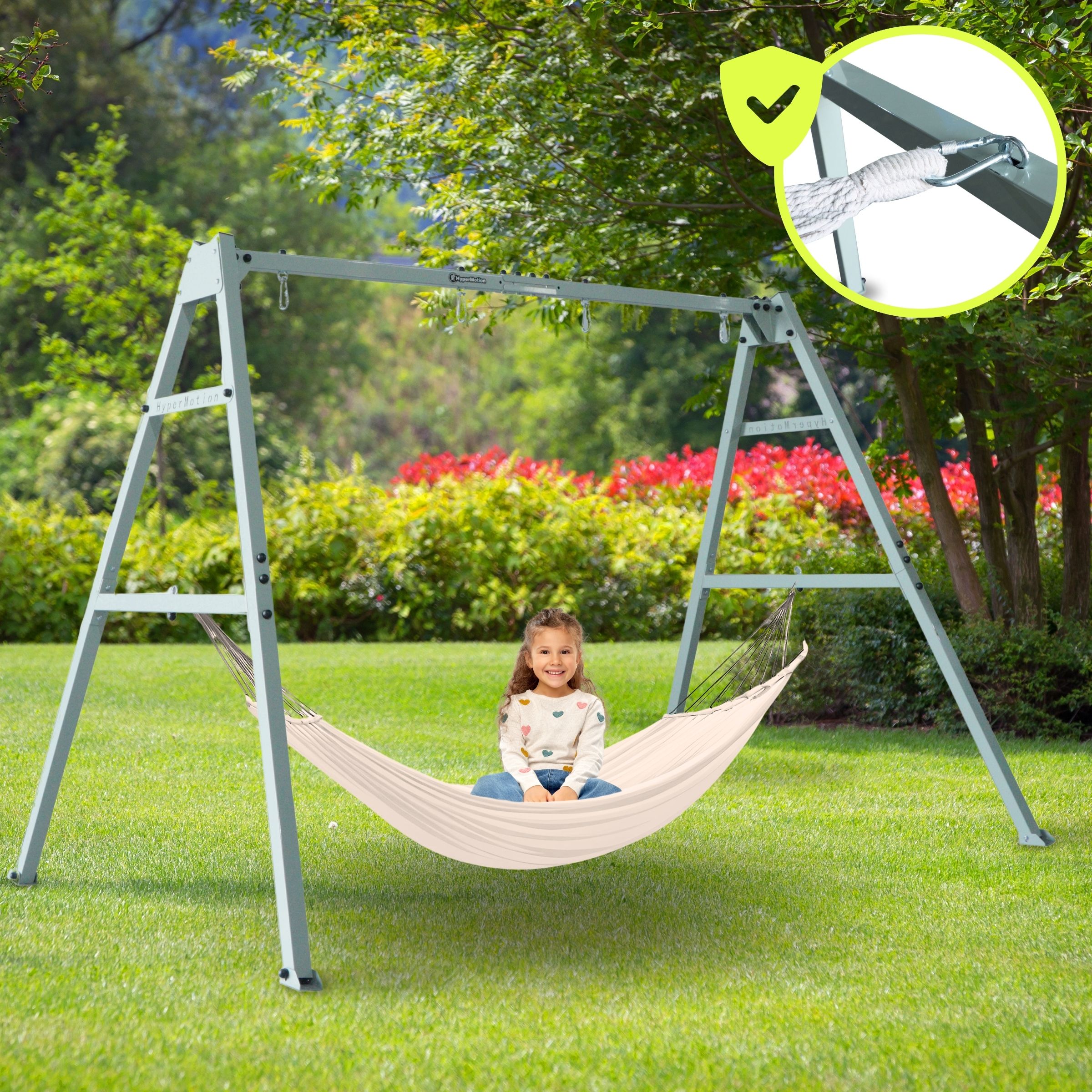 Objesite udobnu viseću mrežu na čelični okvir i uživajte u suncu okruženi zelenilom. Kad završite s opuštanjem, zamijenite viseću mrežu za ljuljačku i ljuljačku kako biste svojim mališanima pružili aktivnu zabavu. Zahvaljujući korištenju visokokvalitetnih materijala, sve komponente seta su izdržljive i čvrste , tako da se ne morate brinuti o sigurnosti svojih mališana. Odabirom ovog atraktivnog seta zajamčena vam je dugotrajna i udobna upotreba. I pribor i okvir zadržavaju svoju estetsku privlačnost tijekom vremena, a njihov bezvremenski dizajn čini ih savršenim za svaki prostor.