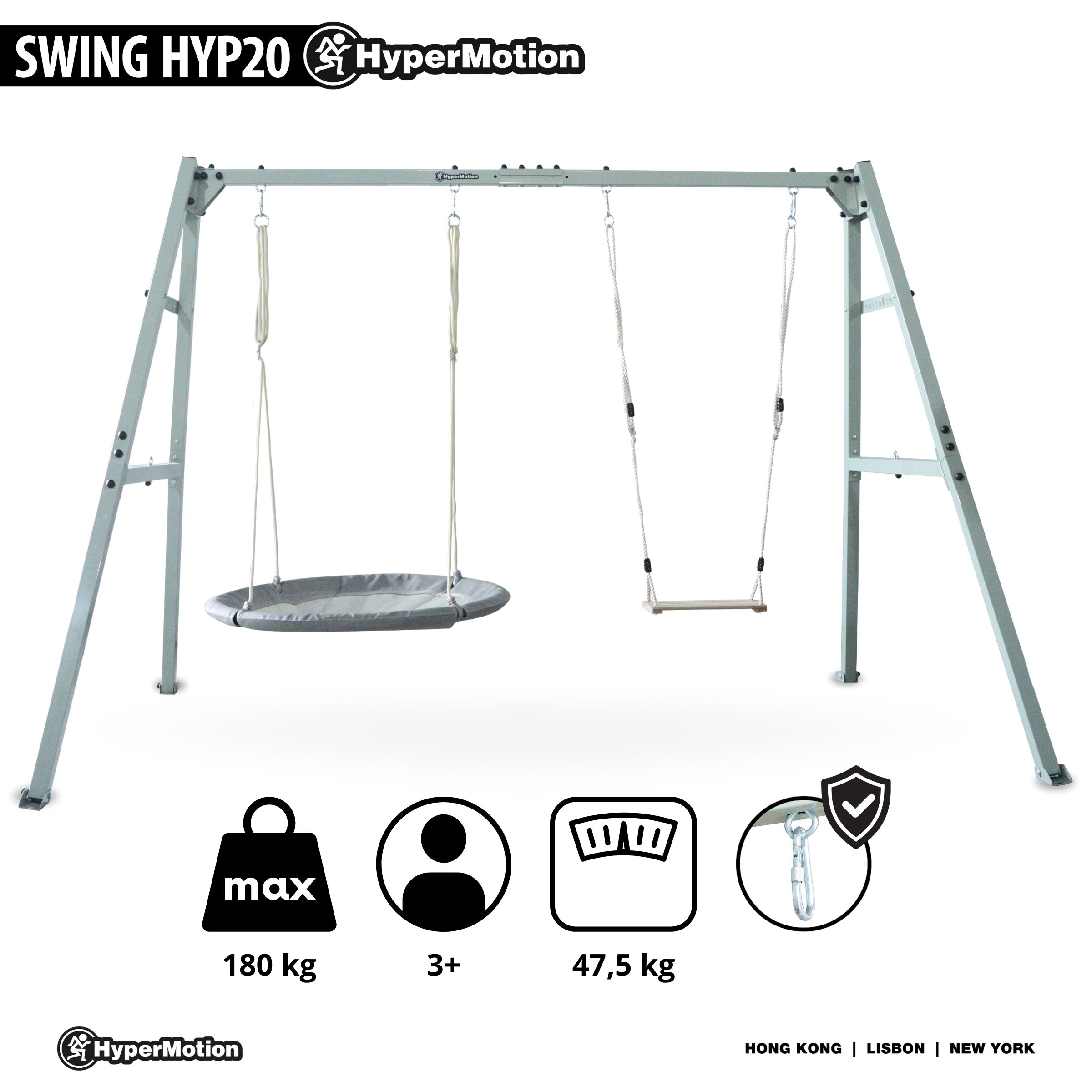 Ova ljuljačka s čeličnim okvirom, visećom mrežom i "gavranjim gnijezdom" ispunjava sve potrebne sigurnosne standarde , a odlikuje se glatkom površinom i zaobljenim rubovima. Izrađena je prema visokim standardima kvalitete, što osigurava dugotrajnu i sigurnu upotrebu.