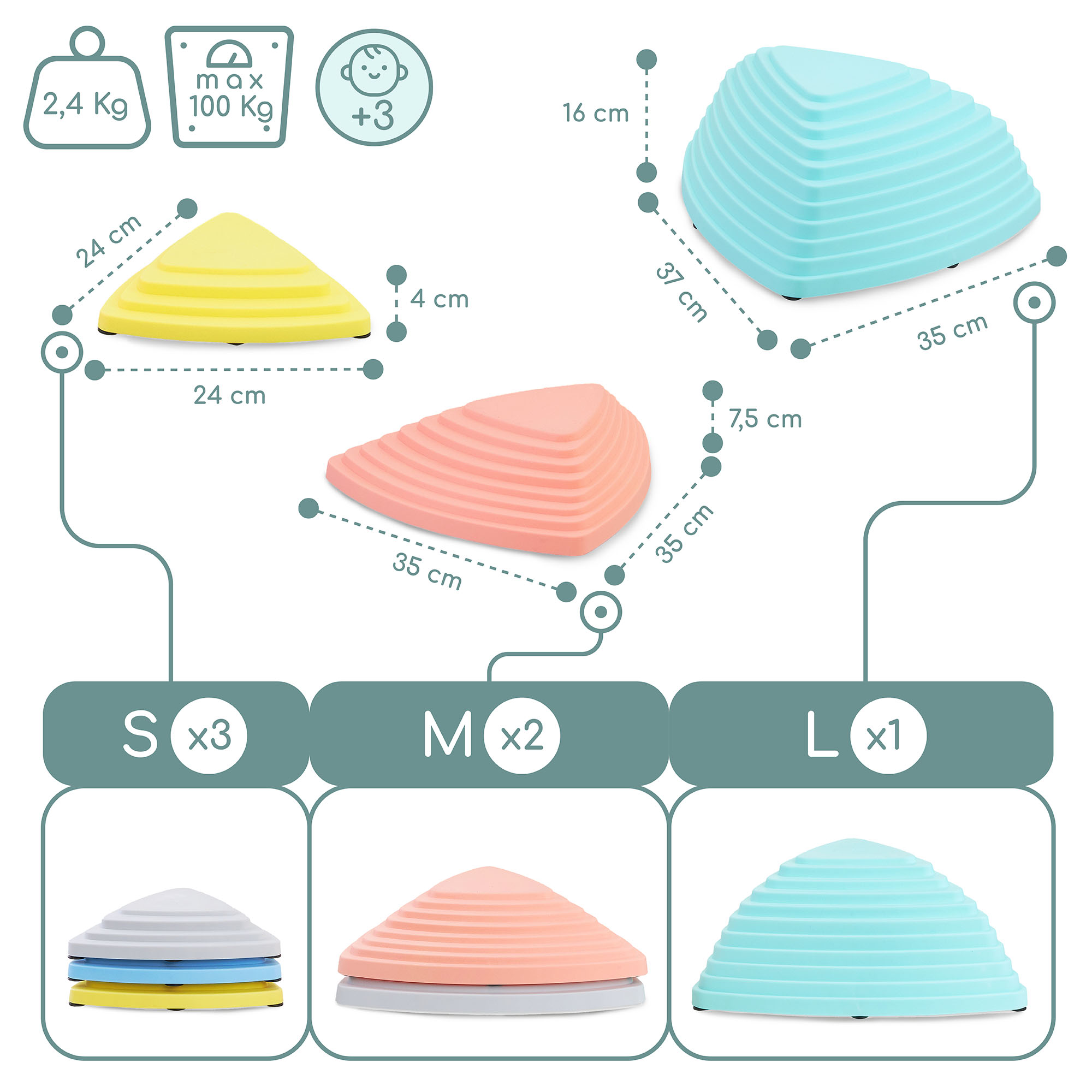Ovaj set kamenja za balansiranje uključuje šest komada različitih veličina i boja . Jednostavno ih postavite na određenu udaljenost jedan od drugoga kako biste svom djetetu pružili zanimljivu zabavu. Balansiranje na uzastopnom kamenju izvrstan je način za razvoj ravnoteže i motoričke koordinacije . Ovaj set izvrstan je izbor ne samo za kućnu upotrebu već i za predškolske ustanove ili rehabilitacijske ustanove.