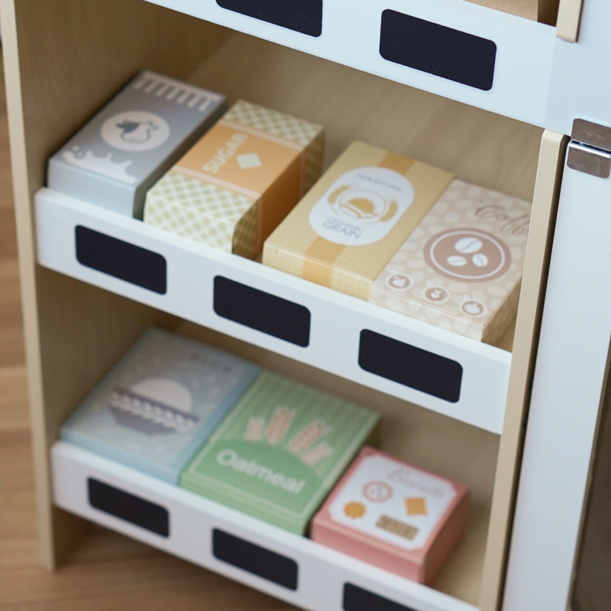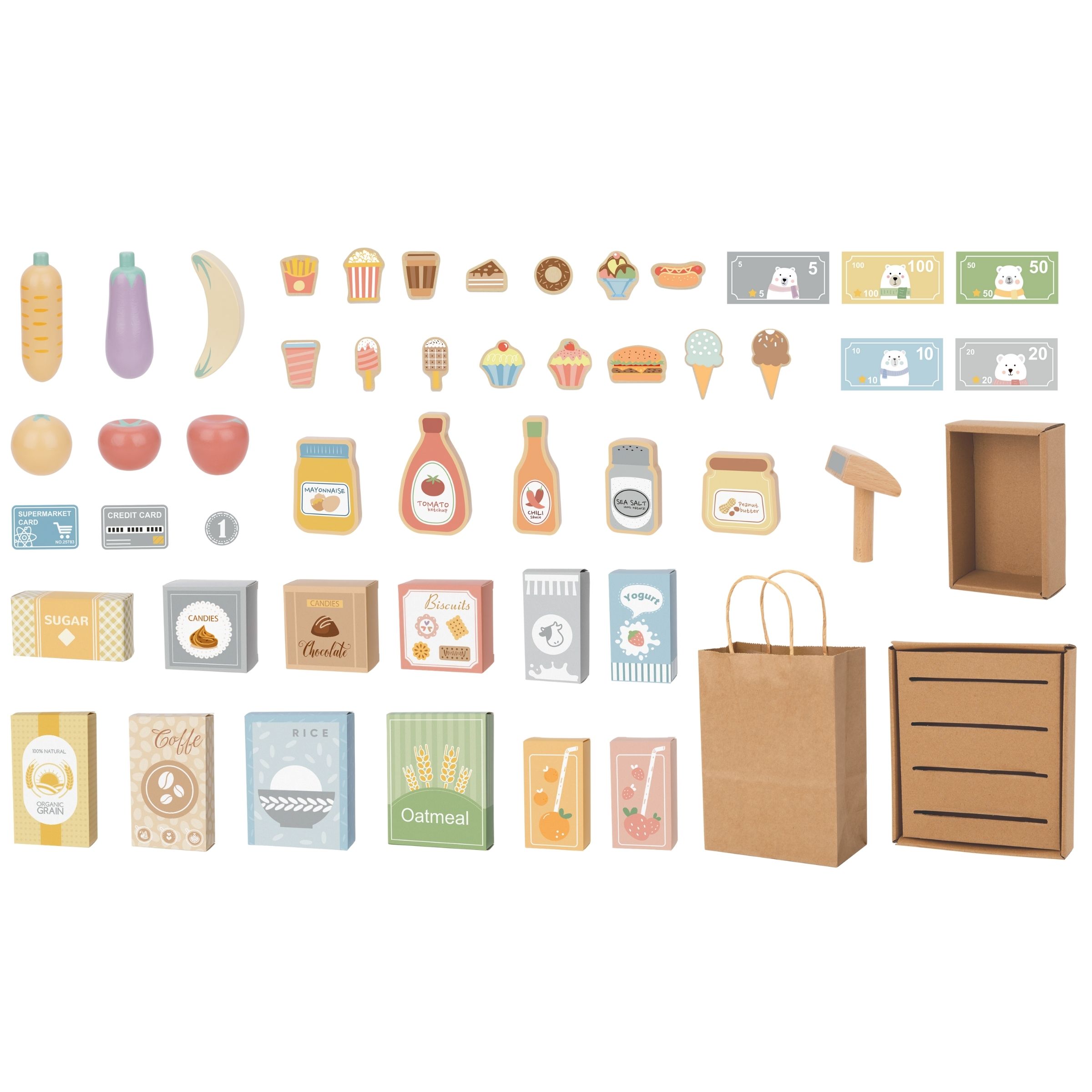 Brojne izložbene police omogućuju mladim prodavačima da organiziraju i praktično rasporede svoje proizvode. Zahvaljujući stabilnom štandu i bogato opremljenom drvenom štandu, djeca mogu preuzeti ulogu trgovca ili kupca, pružajući jedinstvenu, kreativnu zabavu.