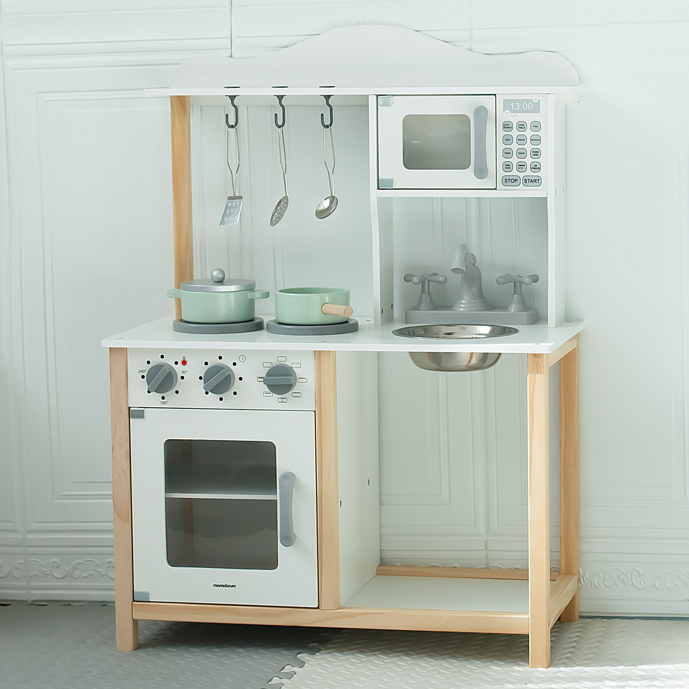 Drvena kuhinja za djecu s mikrovalnom pećnicom