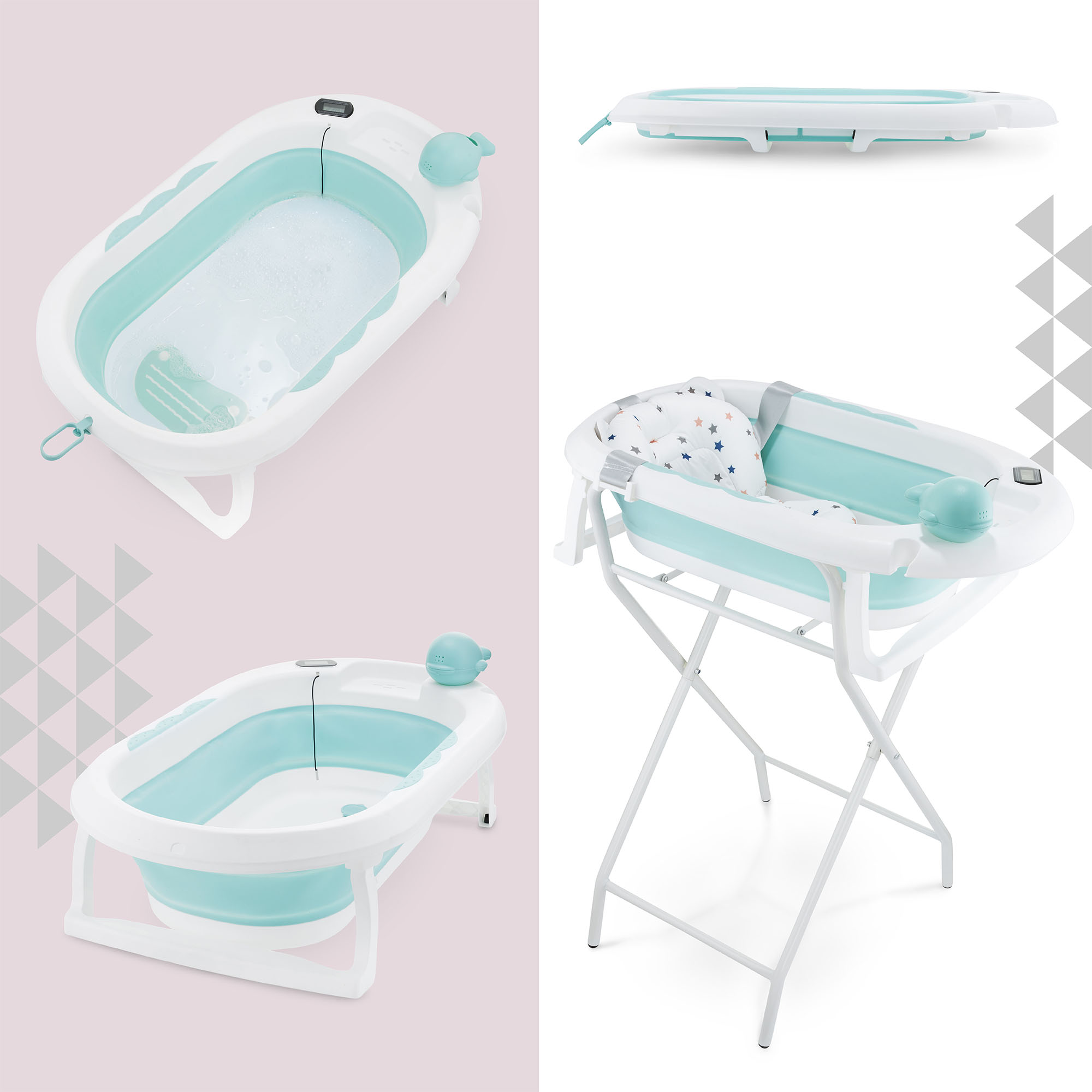 Sklopiva dječja kadica s termometrom, umetkom i postoljem - boja mente