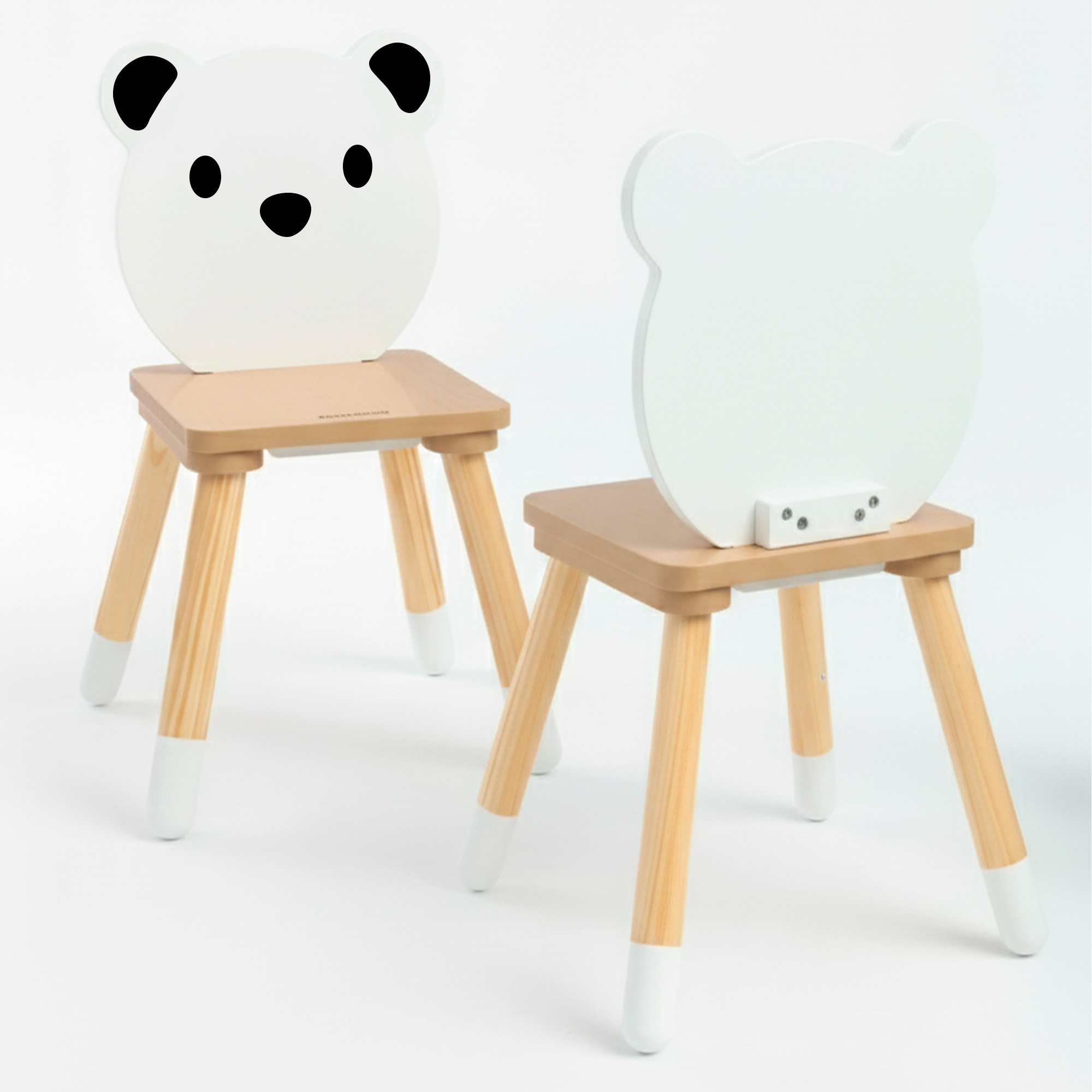 - 2 x stolice u obliku medvjedića (dimenzije stolice: 31,5 cm x 31,5 cm x 50,5 cm, visina od tla do sjedala: 26,5 cm)