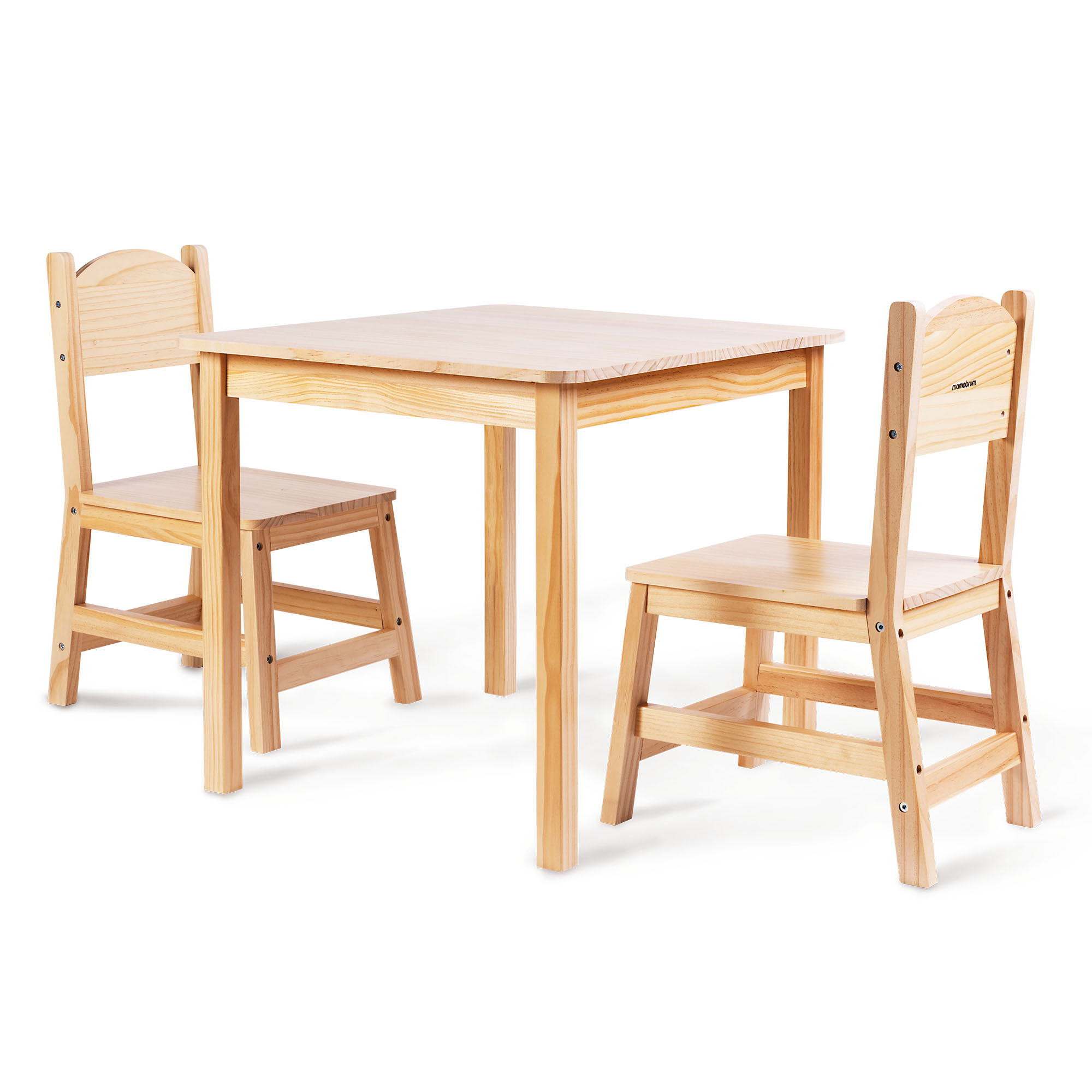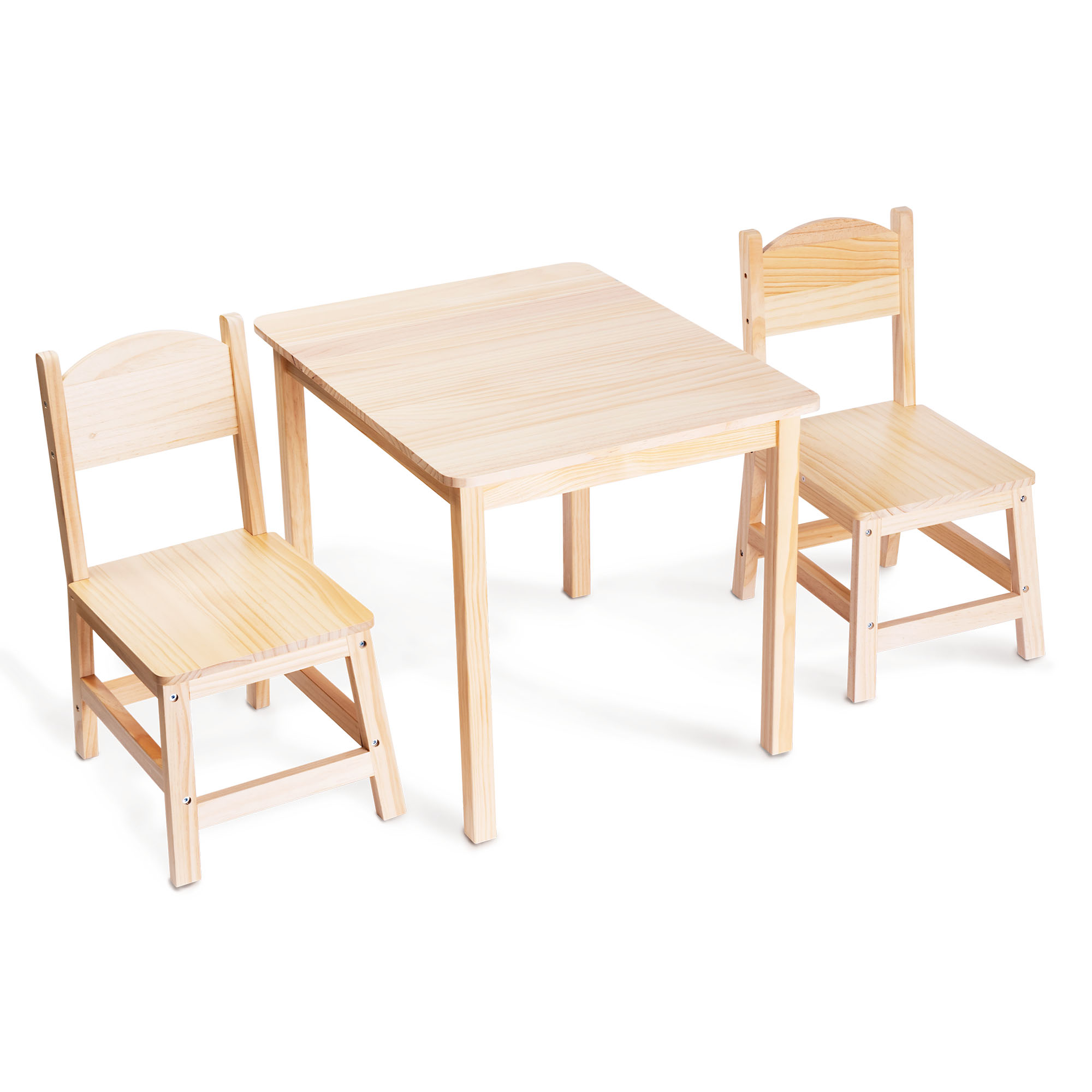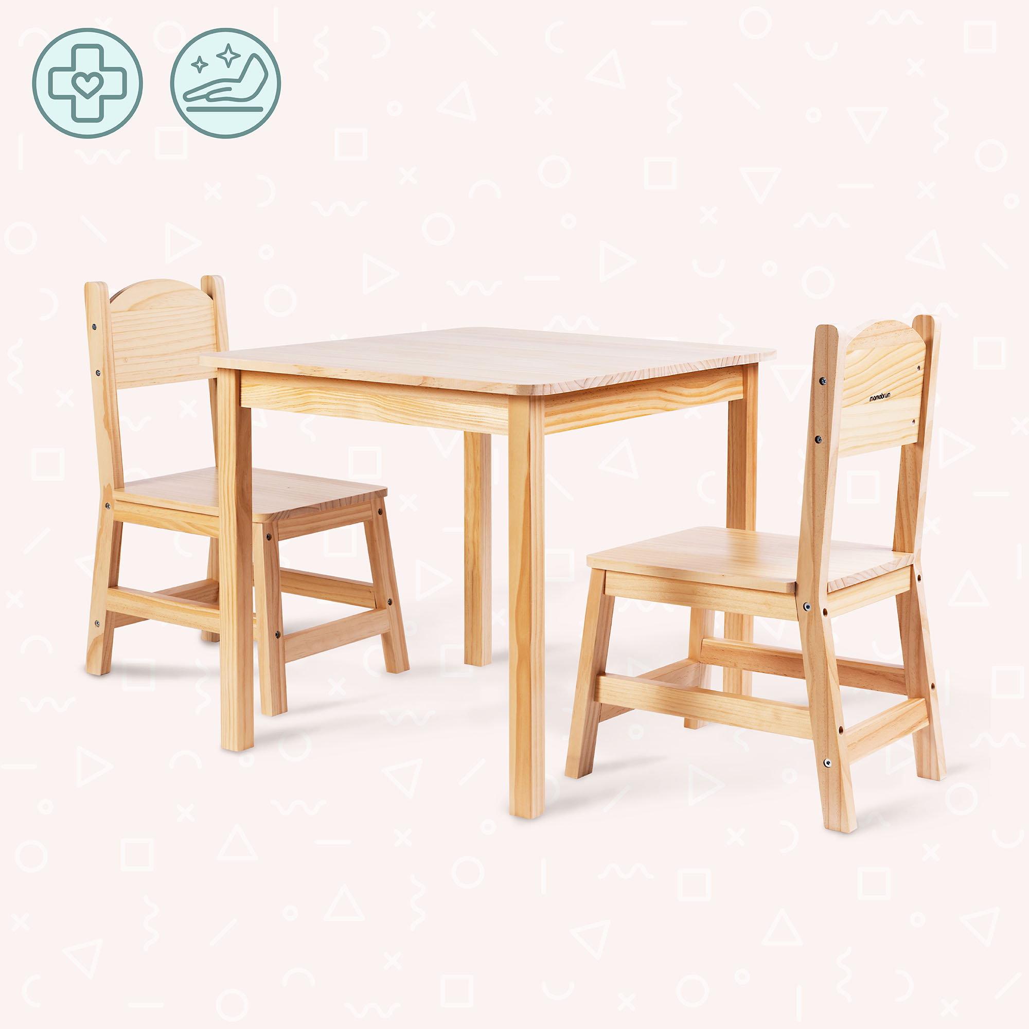 Dajte svom djetetu vlastiti prostor! – siguran, udoban i pun mogućnosti. Ovaj drveni set sa stolom i dvije stolice stvara savršeno mjesto za crtanje, rješavanje zagonetki, učenje, jedenje ili igru s braćom i sestrama i prijateljima. Prirodno borovo drvo, ergonomski oblik i čvrsta konstrukcija čine ovaj namještaj savršenim dodatkom dječjoj sobi, dnevnom boravku ili igralištu.