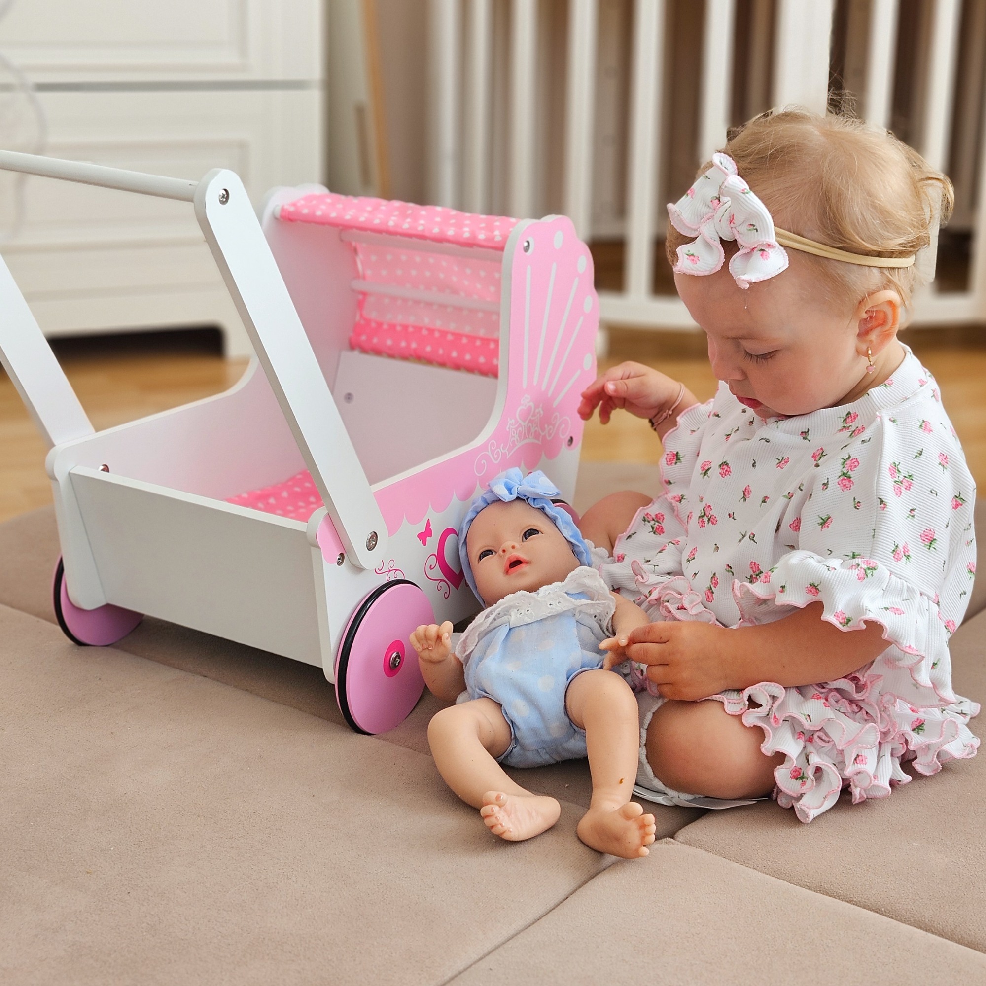 Sada ih može povesti sa sobom u šetnju u ovim preslatkim kolicima. S takvim kolicima svaka će se mala princeza pretvoriti u brižnu majku koja se brine za svoje omiljene lutke.