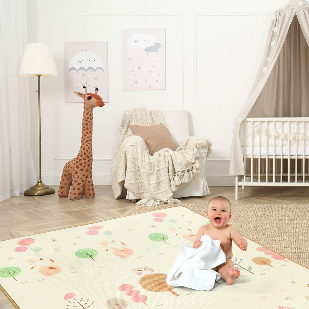 Prekrasan, nježan uzorak koji pristaje svakom interijeru. Ova strana prostirke omogućit će vašem mališanu da se smiri i unijet će veliki stil u sobu. Savršeno za dječaka i djevojčicu.