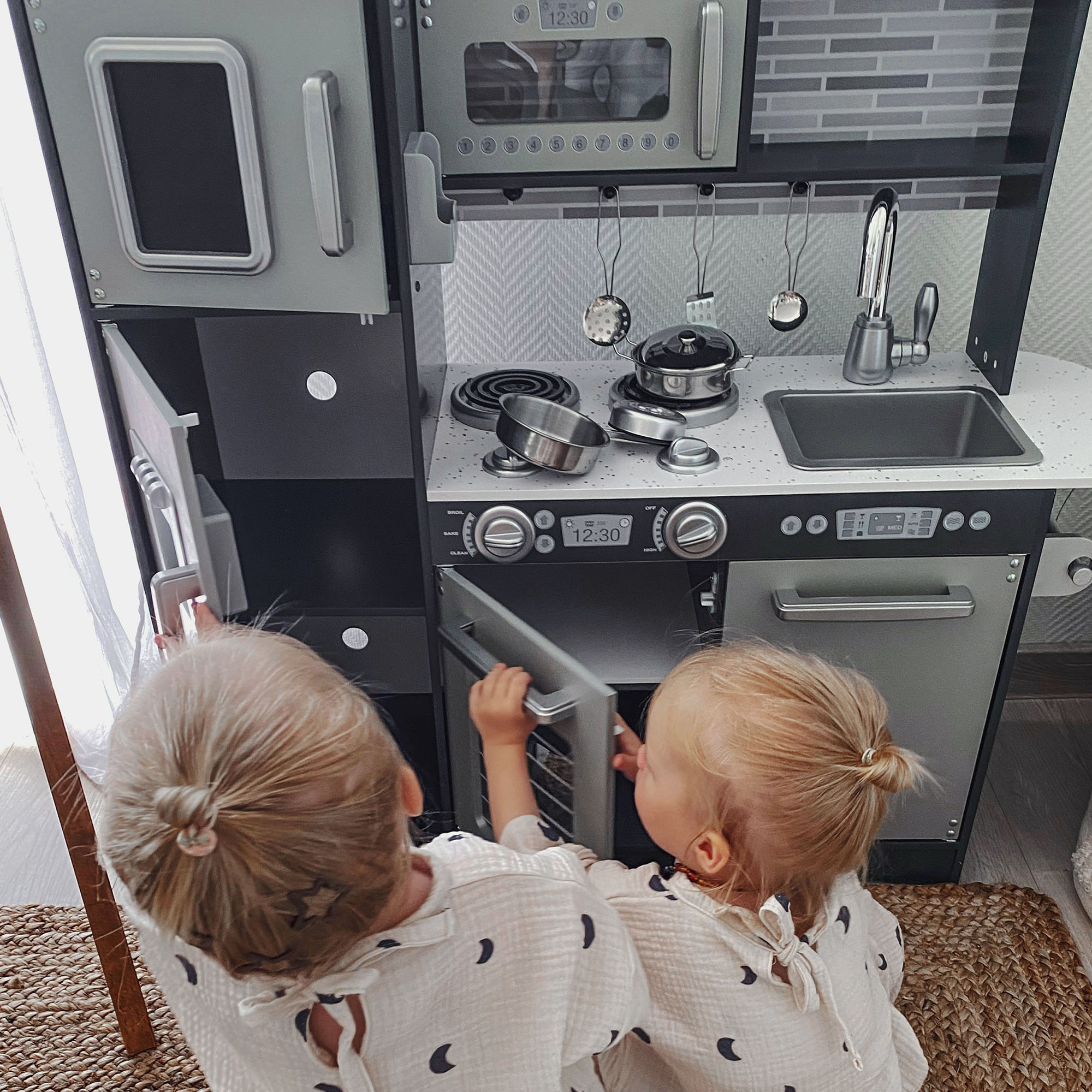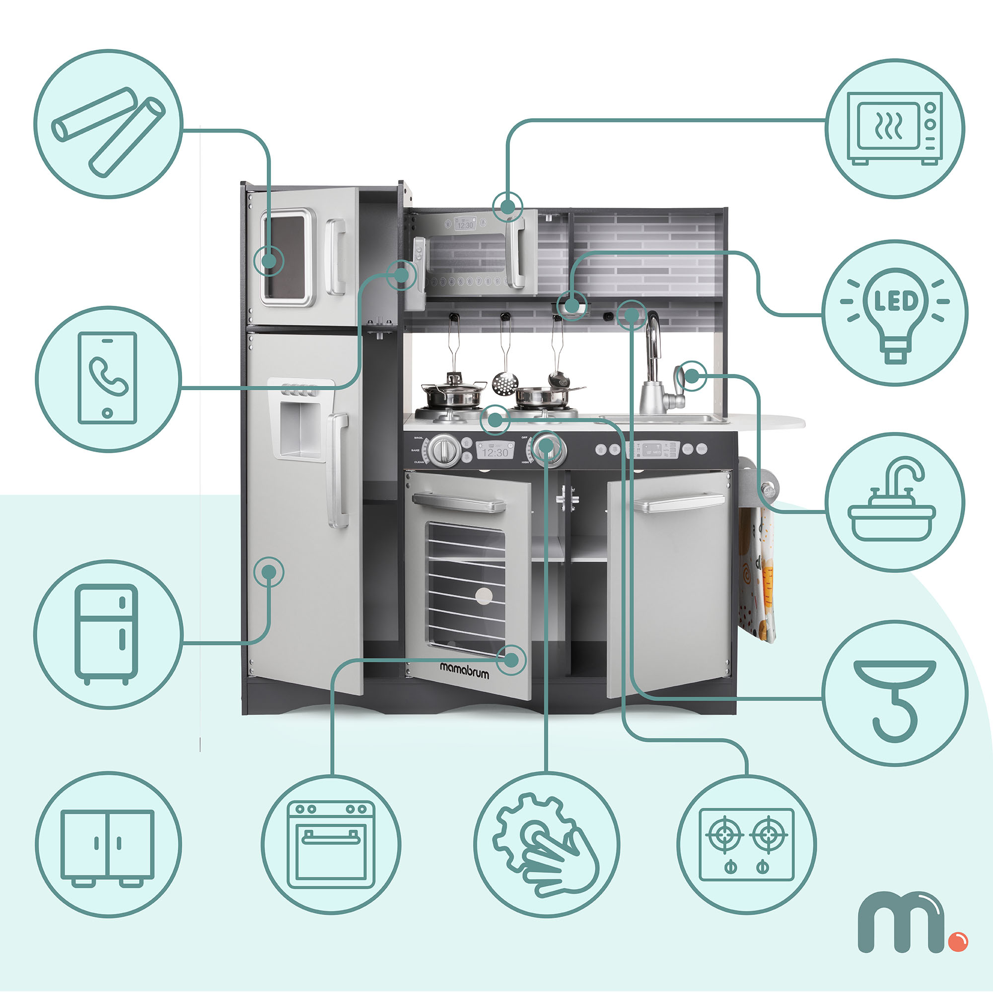 Dodaci kao što su žlica, lopatica i lopatica vjerno su reproducirani iz verzije za odrasle. Kuhinja je izrađena od drveta.