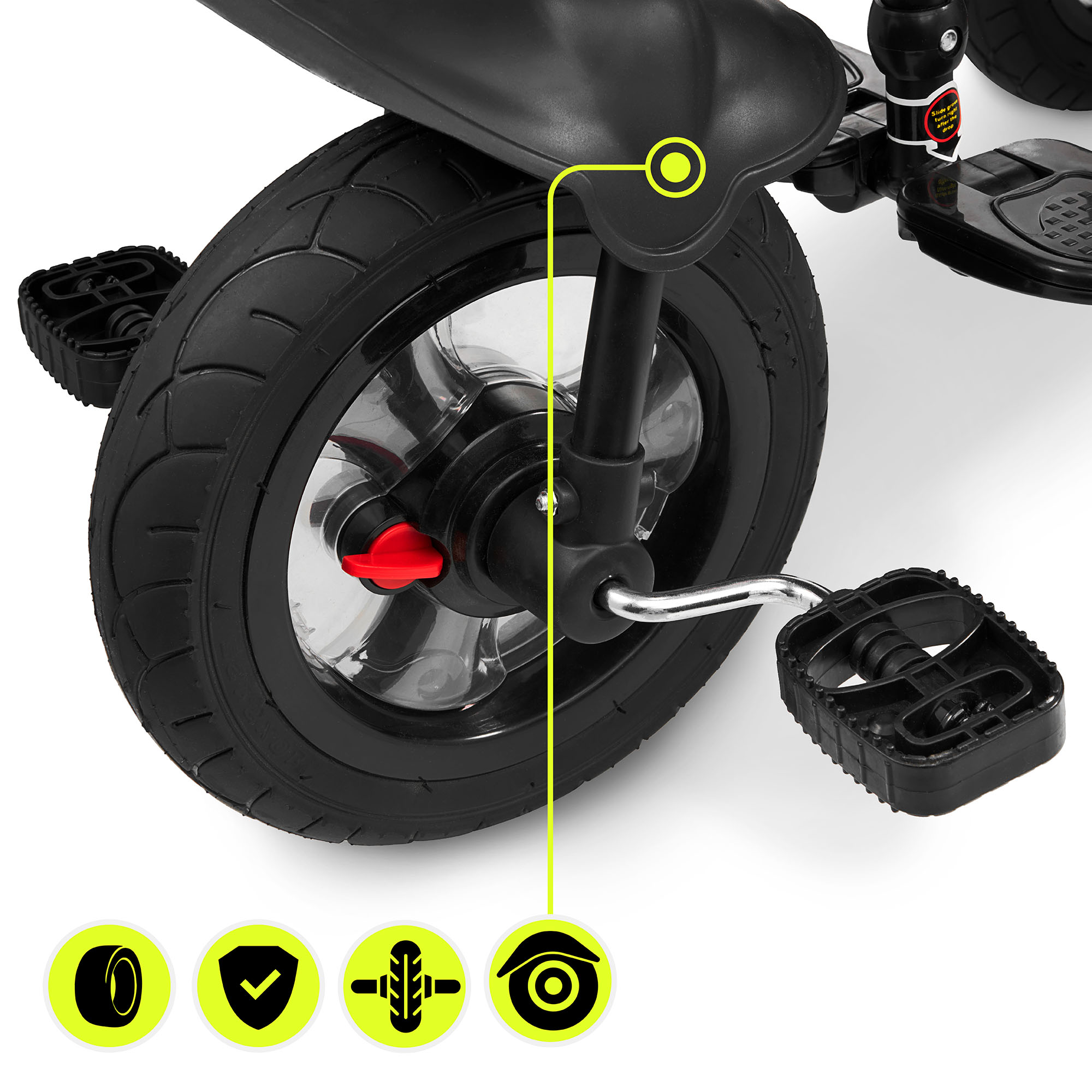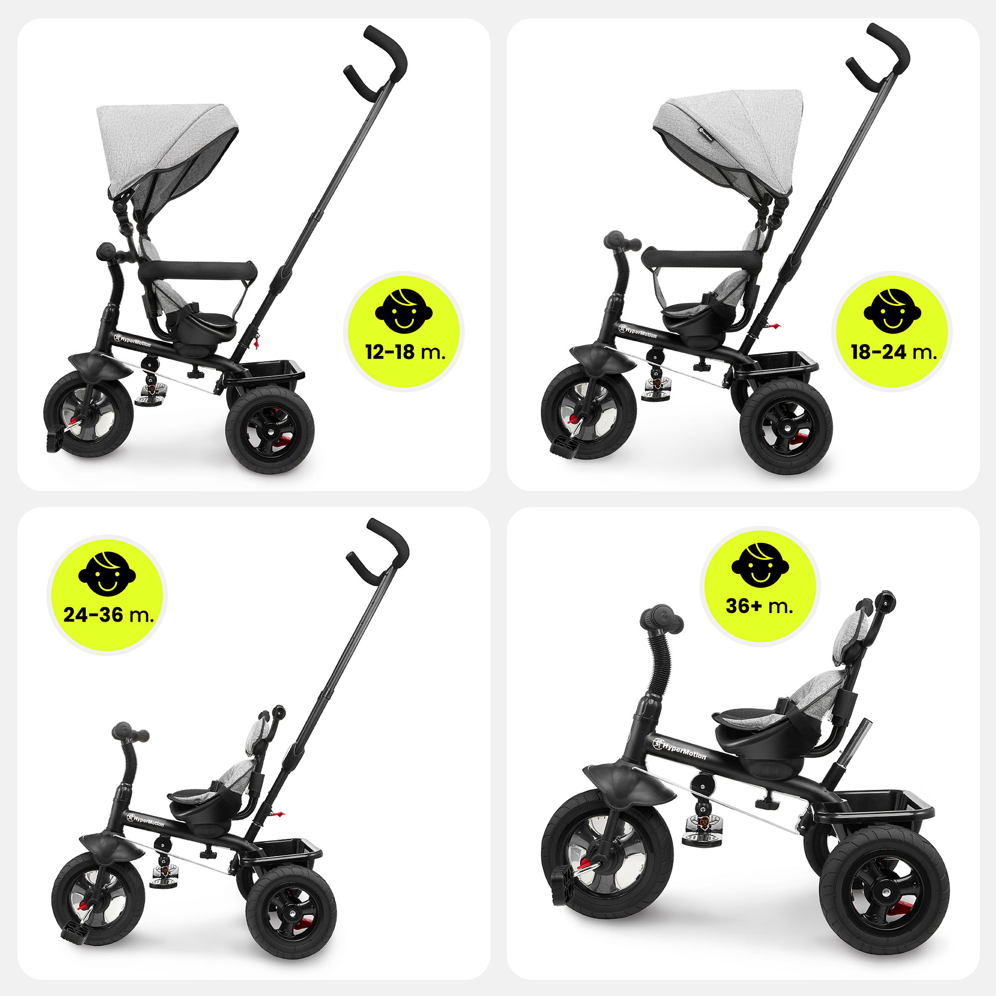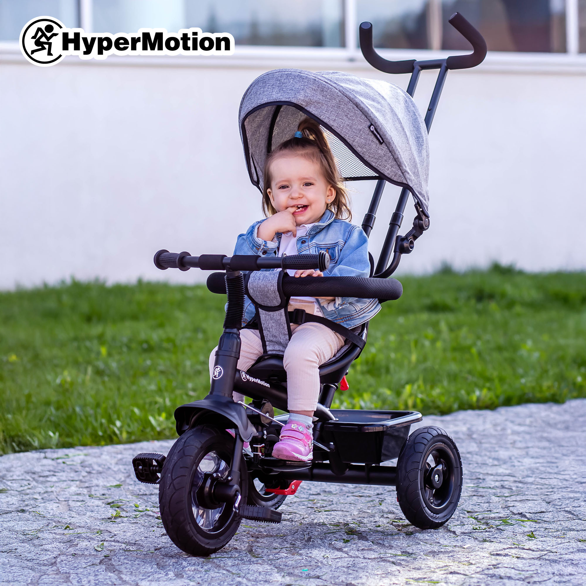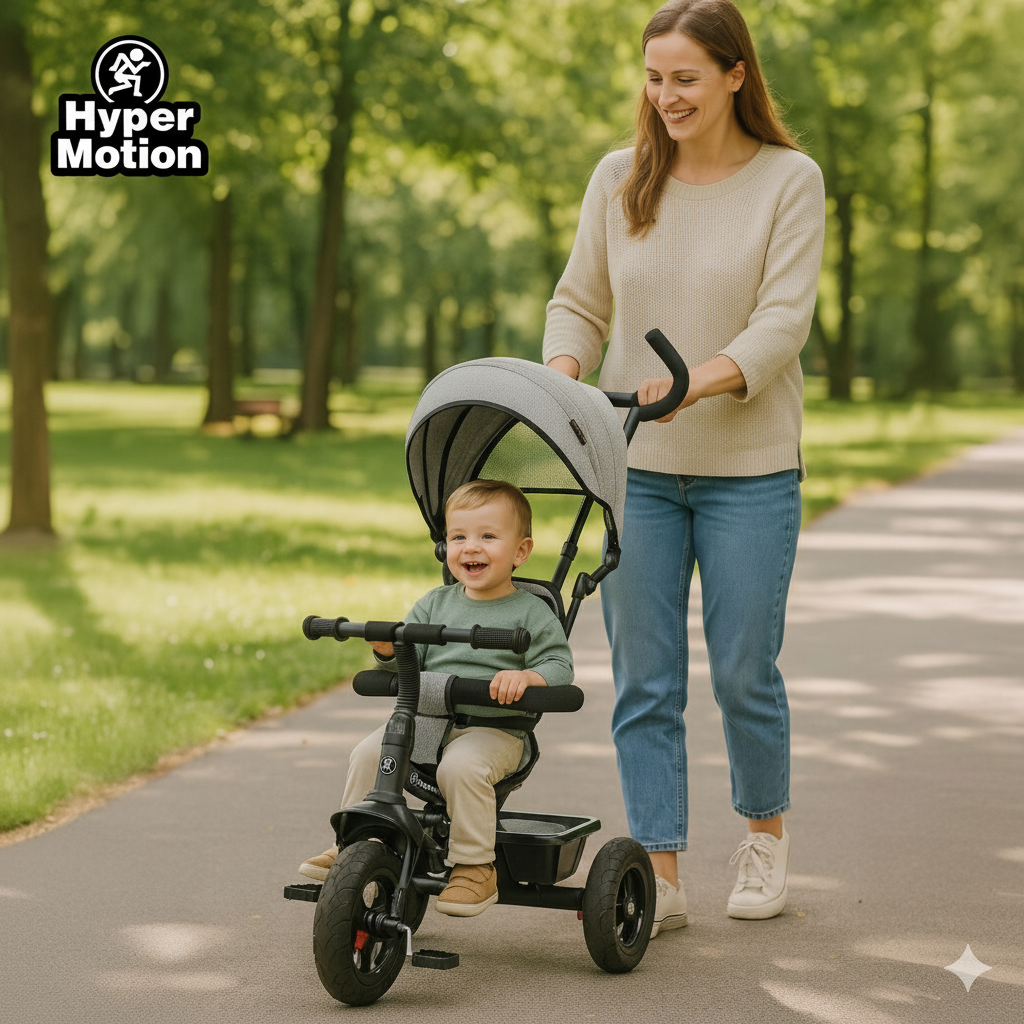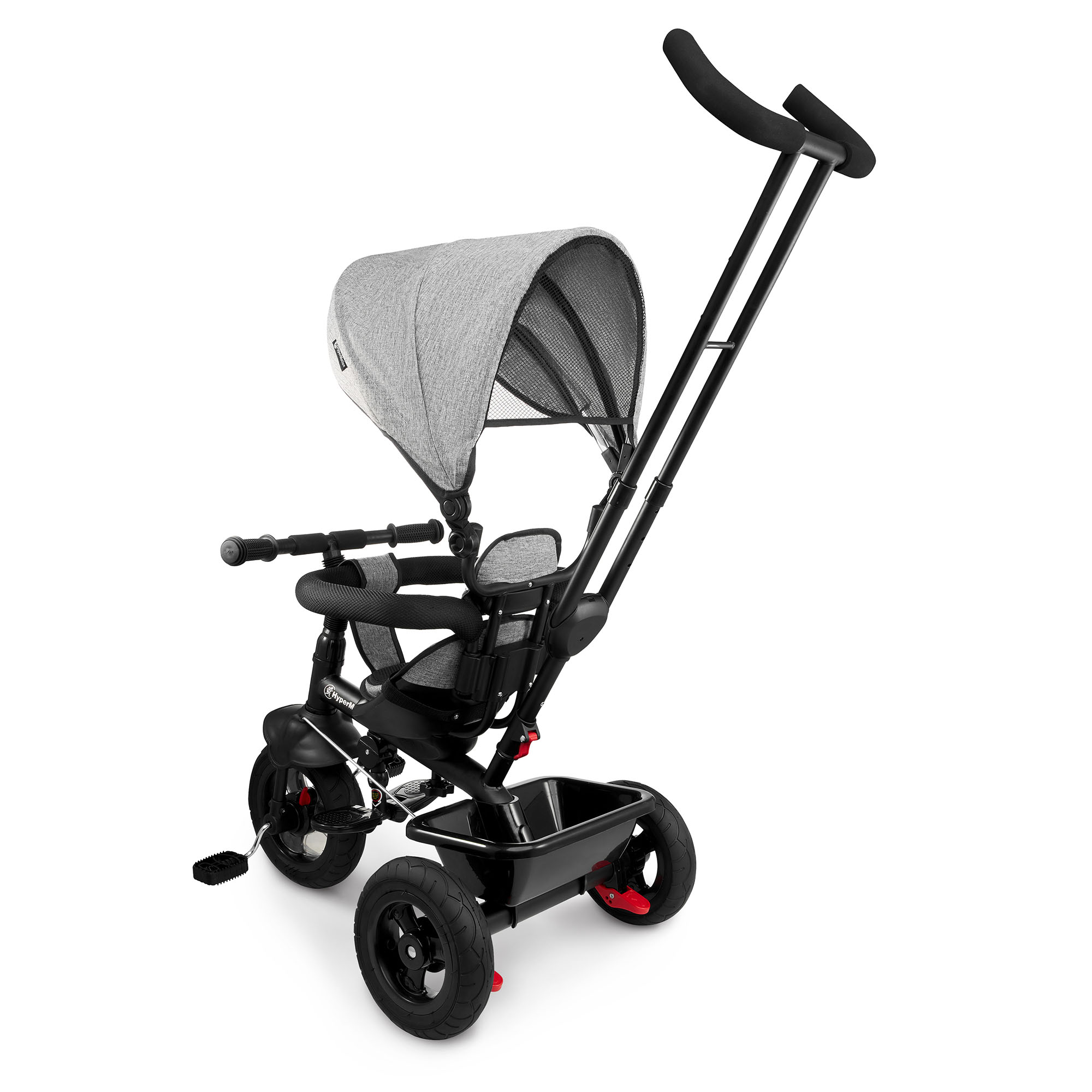 Tricikl za djecu 1-4 godine - TOBI FREY - siva boja - okretna - kotači na napuhavanje + guralica